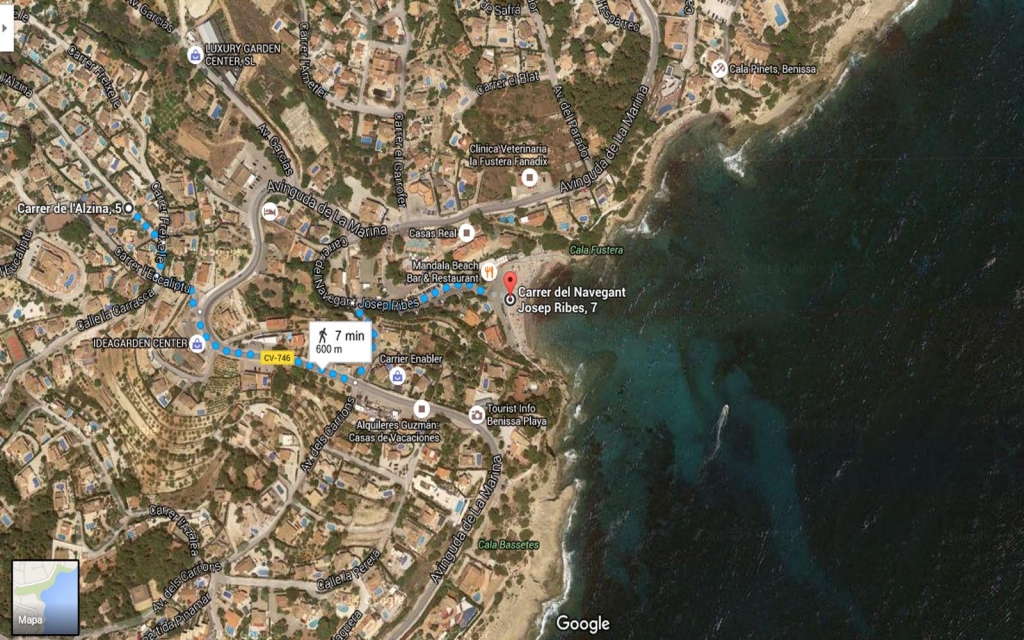 Située sur la côte de Benissa, dans le quartier résidentiel de La Fustera, à 600 mètres d´une jolie plage de sable et 2 minutes en voiture de Calpe, sur un terrain de 800 m2 entièrement clos.Venez profiter de son confort et de sa tranquillité, à quelques minutes à pied de la plage de sable de la Fustera.
